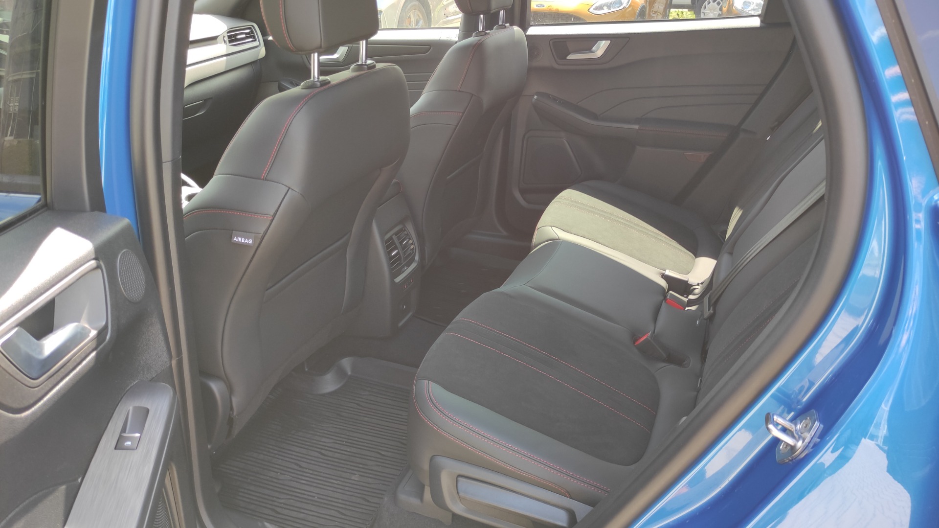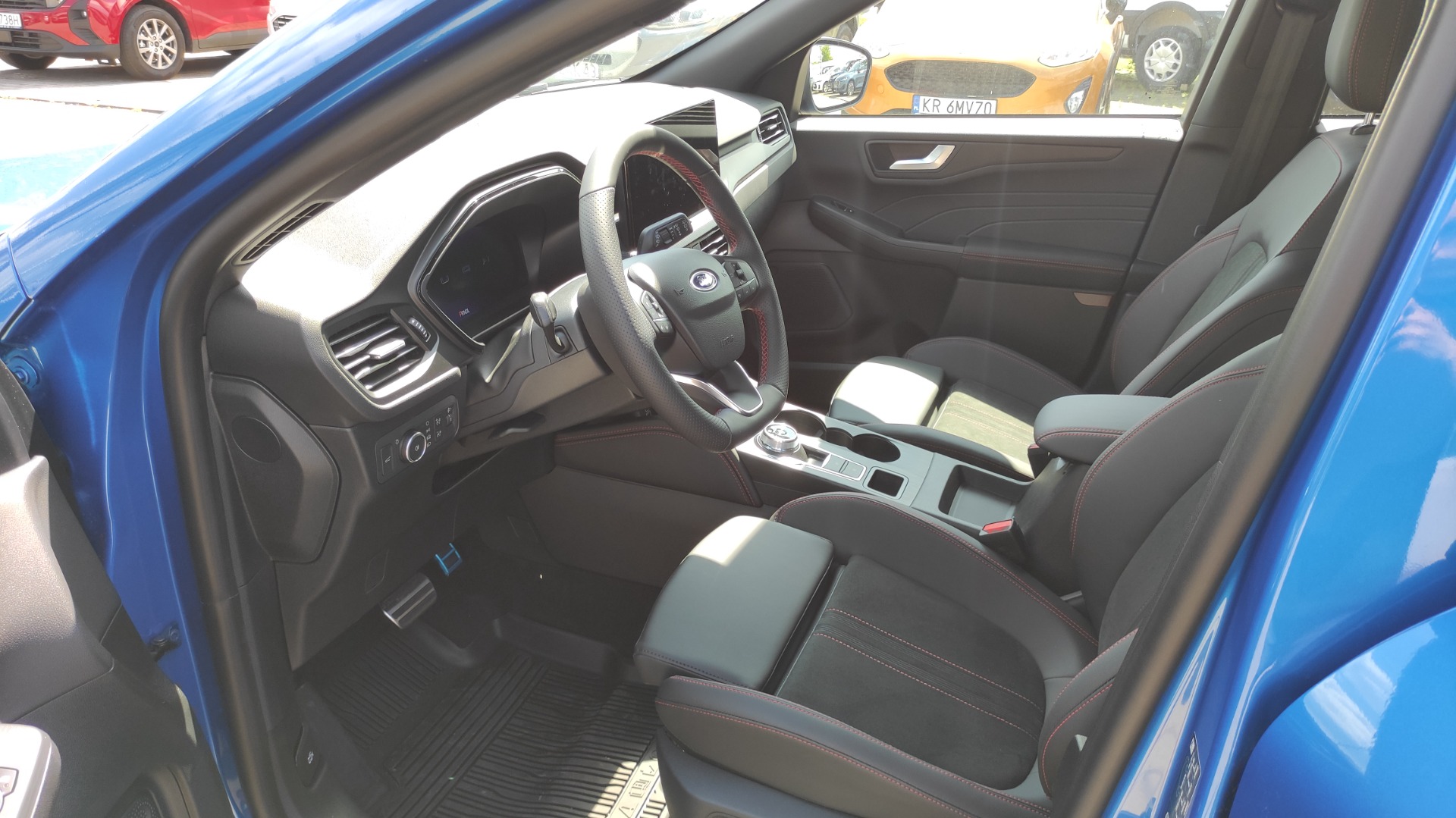 *Przednie fotele – tapicerka częściowo skórzana Nova/Neosuede z elementami skóry ekologicznej Cuir i przeszyciami w kolorze Generic Red