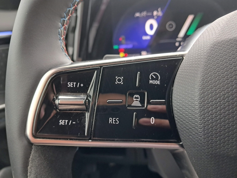 * Deska rozdzielcza pokryta miękką pianką, elementy dekoracyjne z alcantary przeszytej niebieską nicią