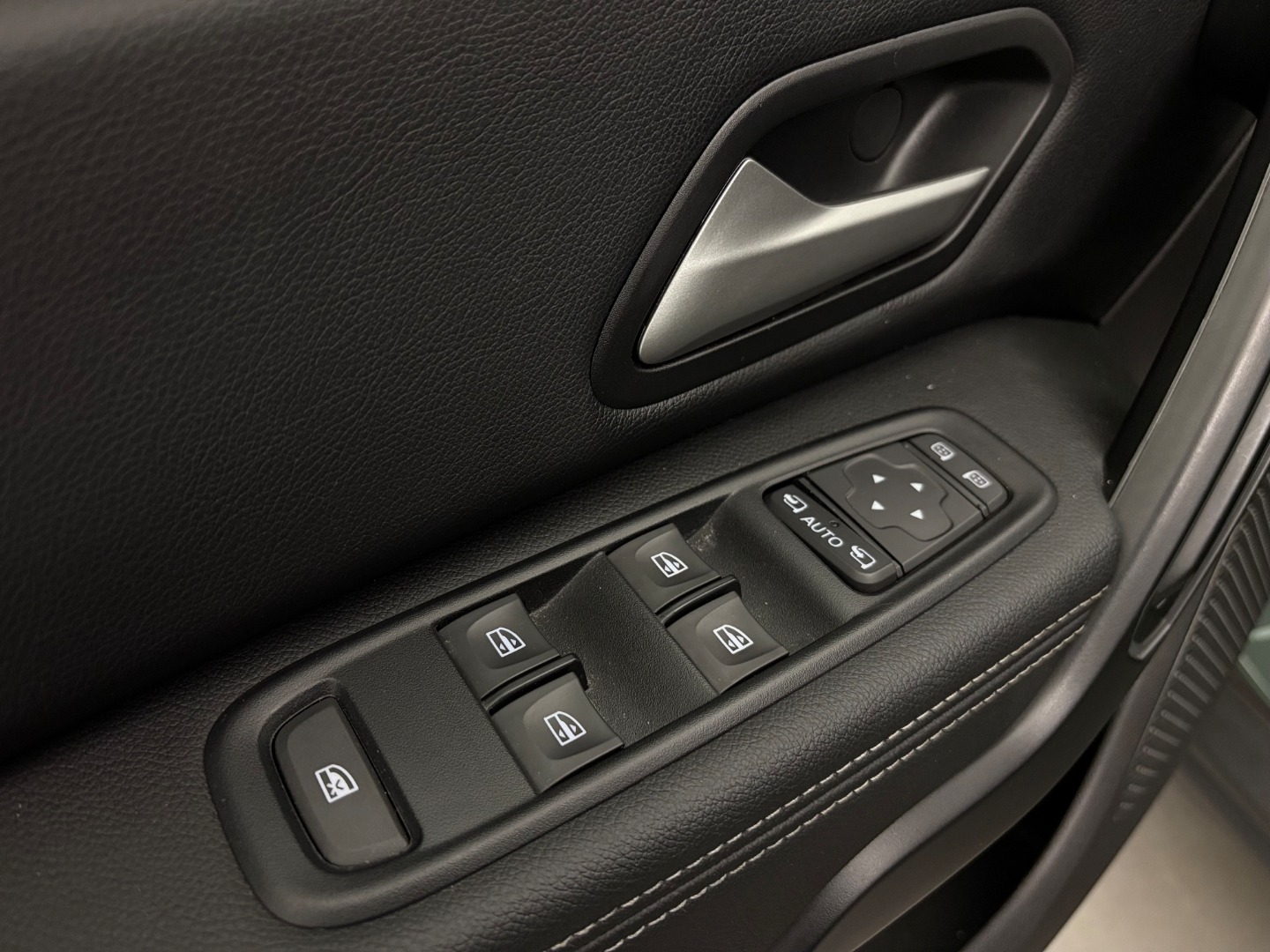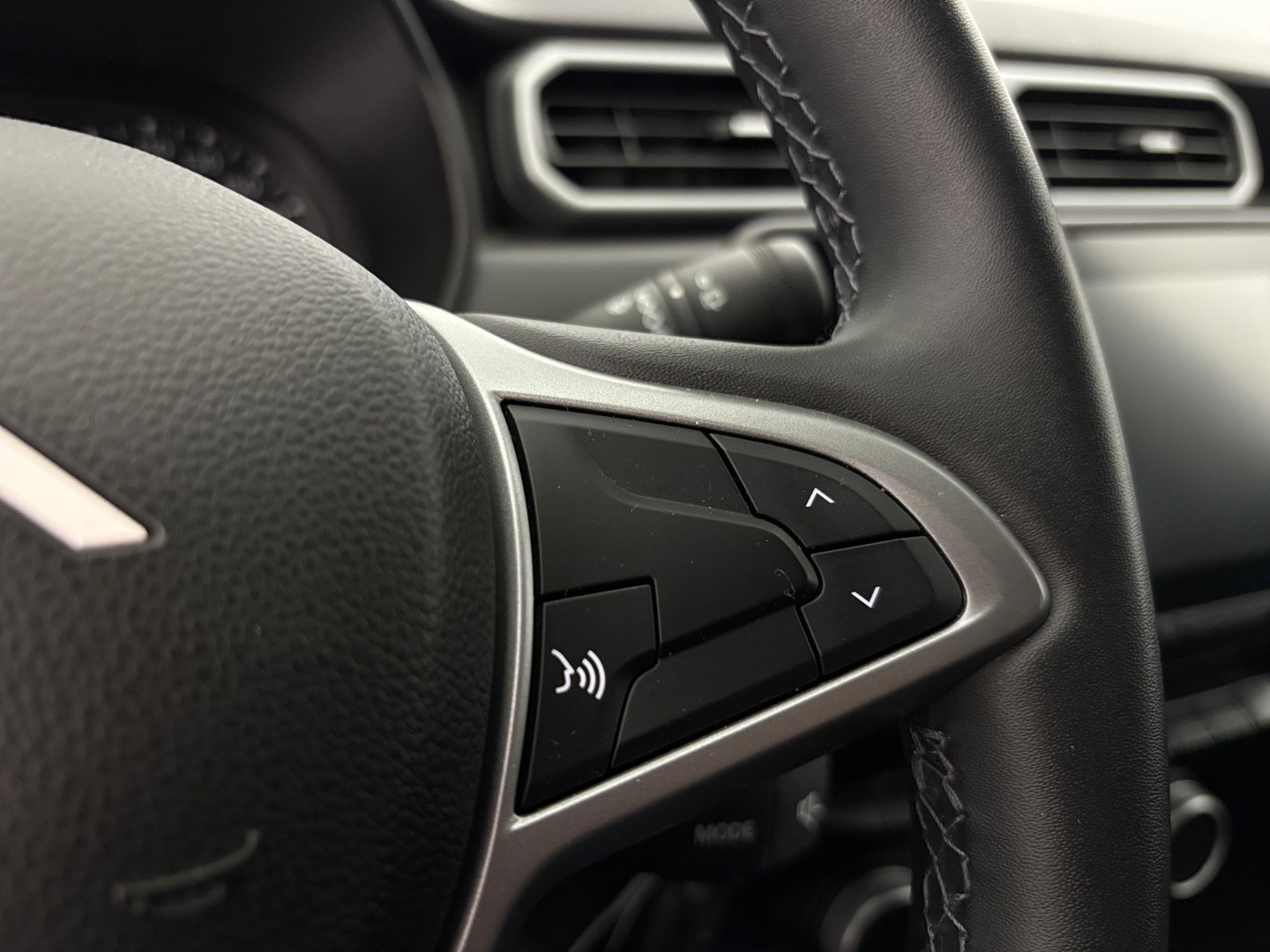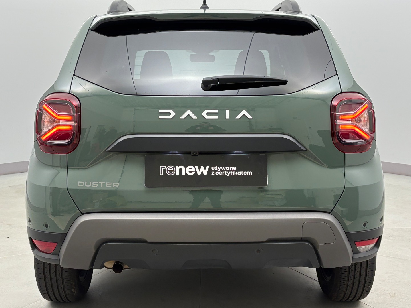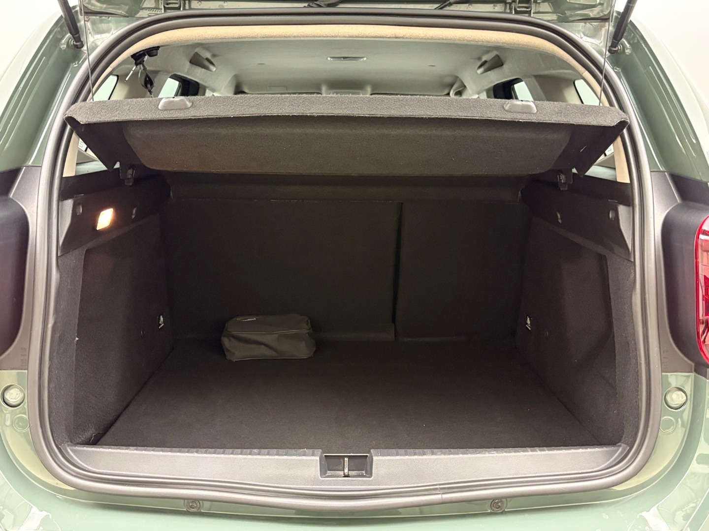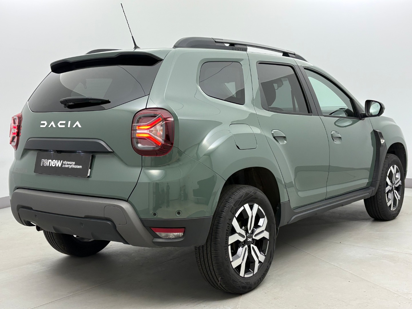 * Tapicerka materiałowa w kolorze czarnym z białymi przeszyciami i logiem Duster