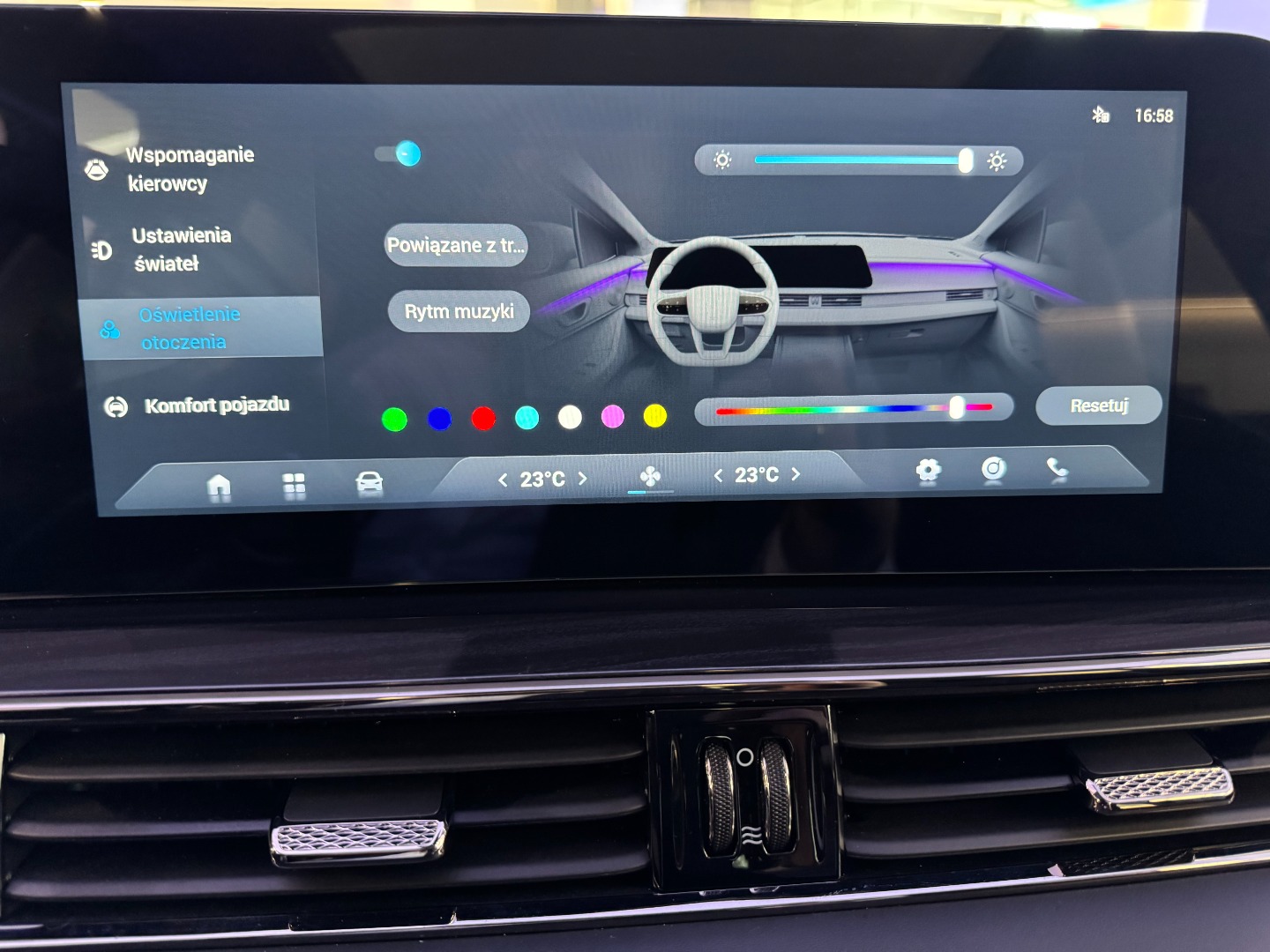 Ambientowe oświetlenie wnętrza w przedniej części pojazdu (z możliwością wyboru koloru)